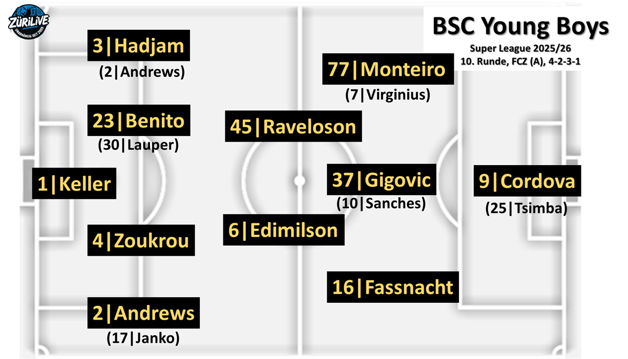 Desaströses taktisches Experiment kostet Erfolgserlebnis und drei Punkte / FCZ – YB Spielbericht mit taktischen Formationen