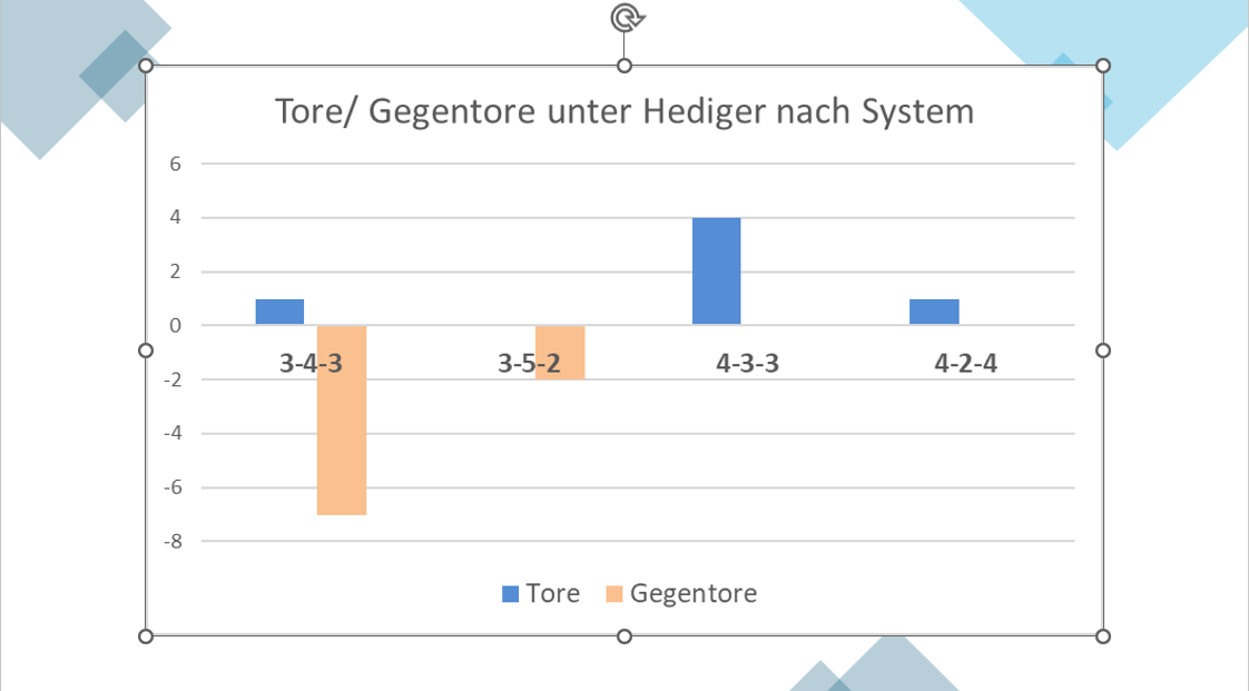 Trotzdem: das Resultat nach zwei vollen Spielen plus 30 Minuten gegen YB im 3-4-3 ist ernüchternd: ein Gesamtskore von 1:7. Gegen Luzern begann Hediger dann wiederum in einem ganz anderen System, einem 3-5-2. Das Resultat: 0:2 nach 45 Minuten. Zur Pause dann wieder der Wechsel auf das gewohnte 4-3-3 – und sofort lief es wieder besser. In dieser Formation kam man vom 0:2 zum 2:2. In der Schlussphase wechselte Hediger mit Reverson noch einen weiteren Mittelstürmer ein, so dass man den Siegtreffer gegen einen im 5-3-1 verteidigenden dezimierten Gegner in einem 4-2-4 erzwingen konnte. Schon gegen YB switchte man in gewissen Phasen immer wieder vom 4-3-3 ins 4-2-4, wenn Steven Zuber von seiner Mittelfeldposition aus entweder zentral oder auf dem linken Flügel die Sturmreihe verbreiterte. Gegen Luzern wechselte Zuber zur Pause von der Linken Aussenläuferposition erst auf den Linken Flügel. Mit der Hereinnahme von Phaêton verschob sich Zuber auf die linke 8er-Position.