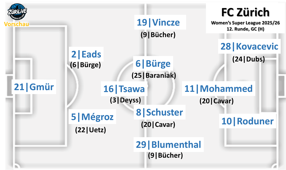 Die FCZ Frauen liegen aktuell auf dem fünften Rang. Nach einer sehr intensiven und langen Vorbereitungsphase hatte man Startschwierigkeiten, kam zuletzt aber wieder etwas besser in Schwung. Das Kader ist weiterhin relativ schmal. Zudem läuft der Shooting Star der letzten beiden Jahre, die junge Ungarin Borbala Vincze, ihrer Form hinterher und lässt fast jegliche Torgefahr vermissen. Auch daher wird sie mittlerweile vorwiegend als Aussenläuferin und nicht mehr im Sturm eingesetzt. Die immer noch 15-jährige Shanae Tsawa hat sich hingegen von Beginn weg als Stammspielerin auf einer zentralen Position etabliert. Innenverteidigerin und Captain Naomi Mégroz ist bisher mit sechs Treffern die beste Torschützin im Zürcher Dress. Heute wurde zudem bekanntgegeben, dass Diane Caldwell und Anna Matsushita, die im aktuellen Kader keine bzw. nur noch eine kleine Rolle gespielt haben, ihre Karrieren beenden. Riana Gmür ist im Verlauf der Vorrunde zur Nr.1 im Zürcher Kasten aufgestiegen.