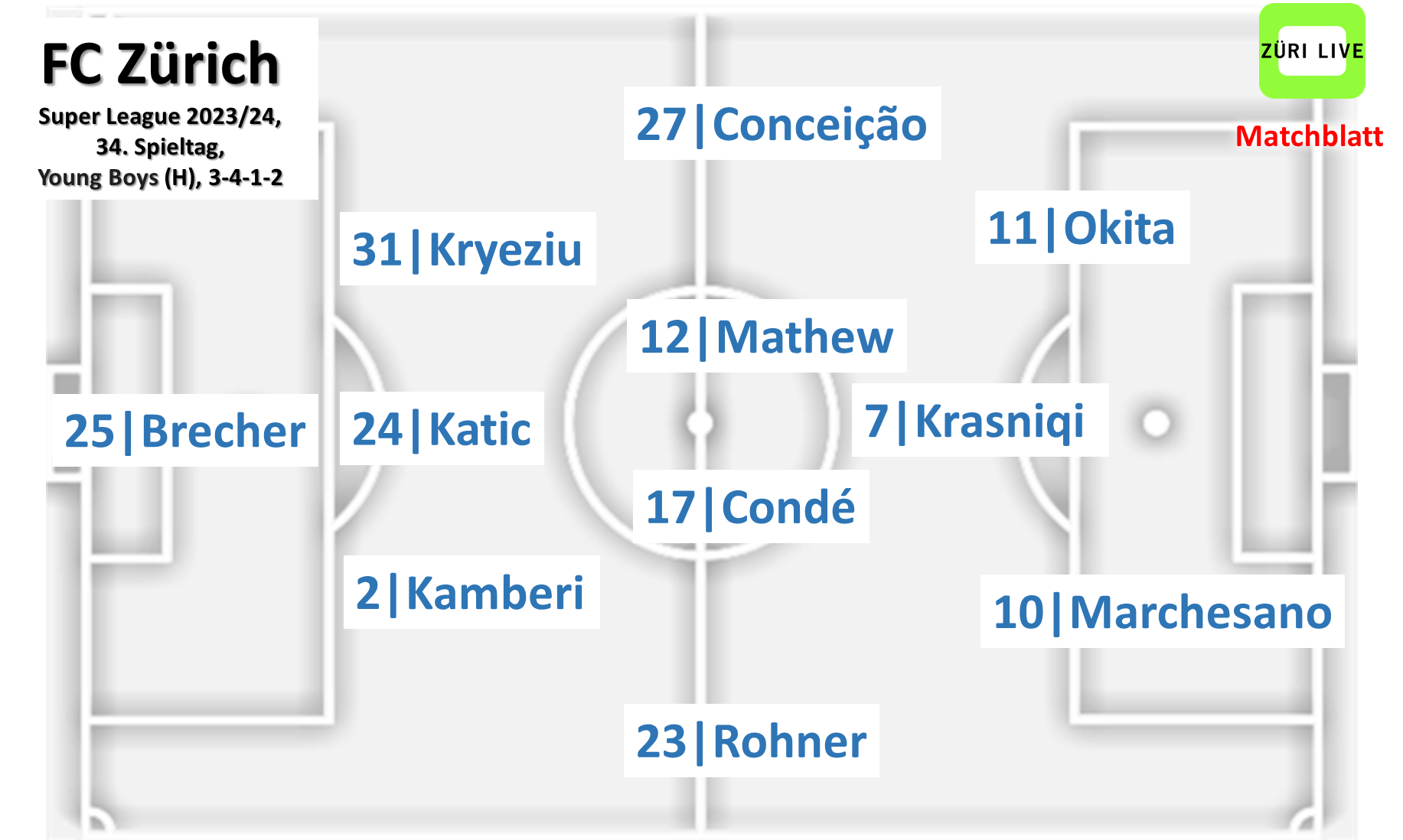 - Jonathan Okita: Trotz 1:0-Führungstreffer einziger FCZ-Spieler mit ungenügender Note. Schlampige Aktionen in Ballbesitz speziell in der ersten halben Stunde. Defensiv fehlt unter anderem bei gegnerischen Einwürfen eine klare Idee, was er machen will.